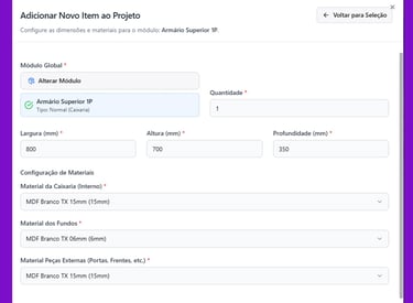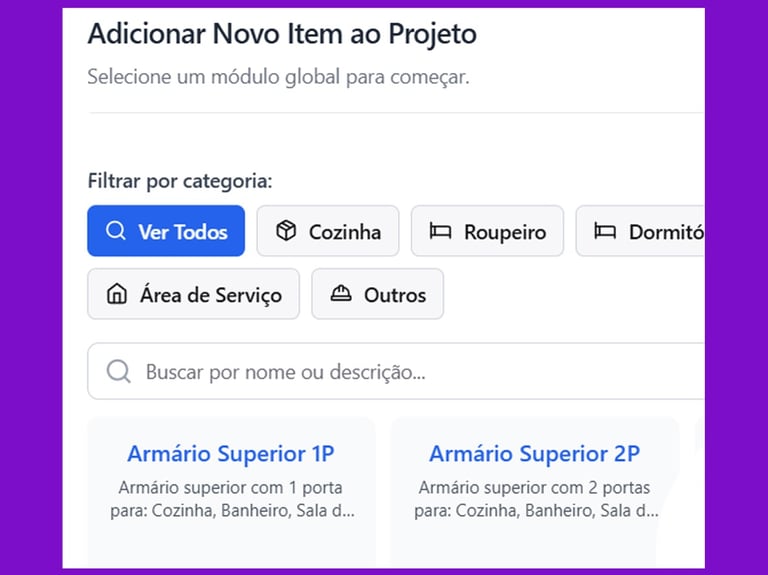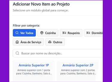 Escolha o tipo de módulo que você deseja orçar, disponíveis na biblioteca de módulos universal.